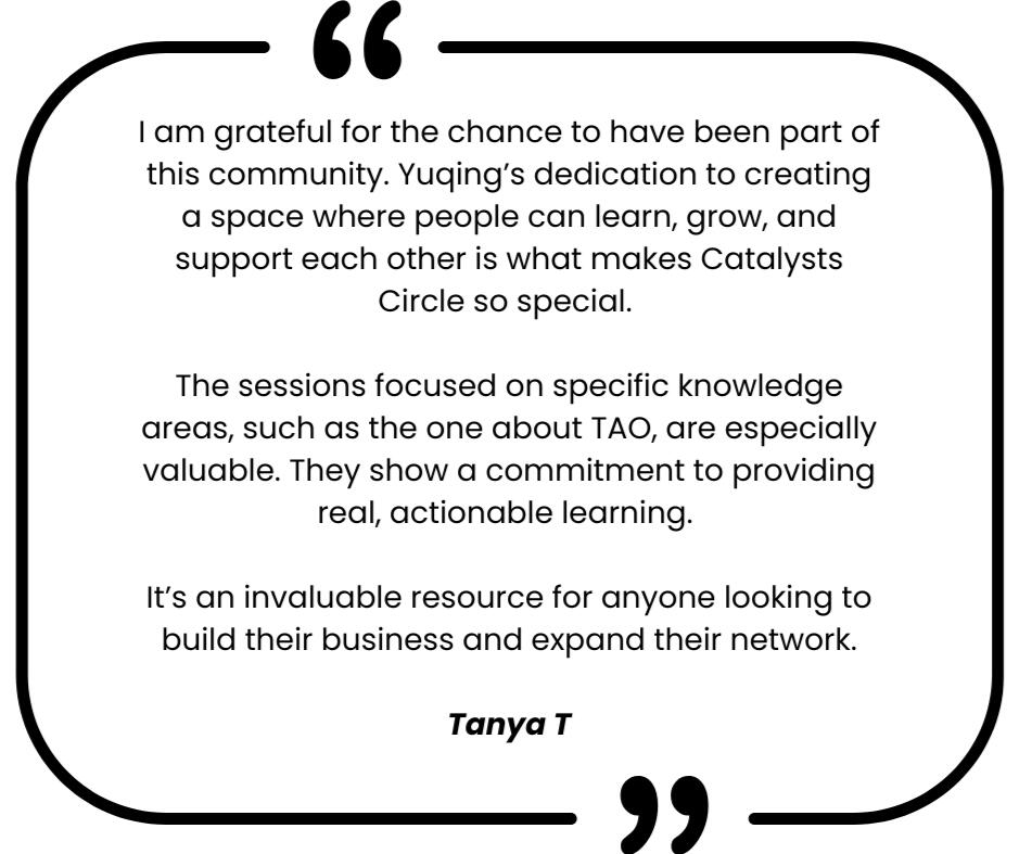 This Code of Conduct applies to all members and participants in Catalysts Circle — including founders, staff, members, guest speakers, and other community contributors — across all our platforms (online sessions, in-person events, member hub, etc.).